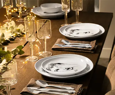 Romy Smiedt won a magical table décor prize. This prize included a set of Sketchbook dinnerware and dinner service for 8 guests and the coveted Glass Bowl and Stand – all dressed up.